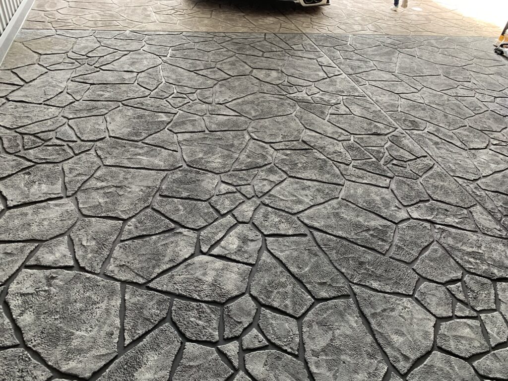 自宅の車庫、土間コンクリートの上からローラーストーンを施工致しました!